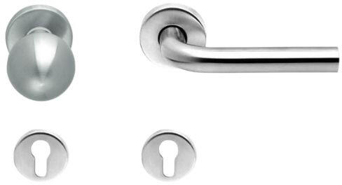 Fix, eltolt, oválrozettás játszóajtógomb. A gomb nem fordítható el, de a tengely elfordul, az ajtó másik oldalára szerelhetünk fel kilincset.