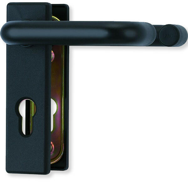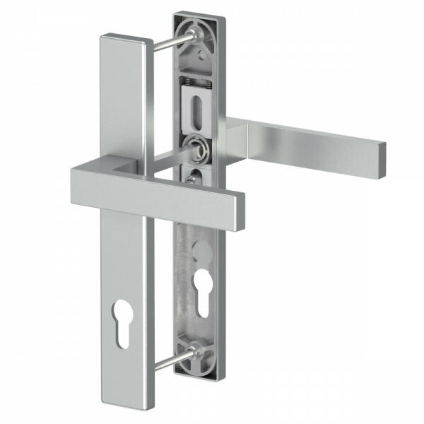 DIN szabványnak megfelelő kilincs garnitúra. Elsősorban tűzgátló vagy menekülési útvonalak ajtajain találkozhatunk vele, komoly igénybevételnek kitett nagy forgalmú ajtokra is ajánlott. A garnitúra tartalma: 2 db alaplemez 2 db fél kilincs 2 db takarócím 1 db 9 mm- es kilincstengely 2-2 db M5 csavar, alátéttel együtt 2 db M5 menetes hüvely A gyári csavarokkal 40-66 mm vasta