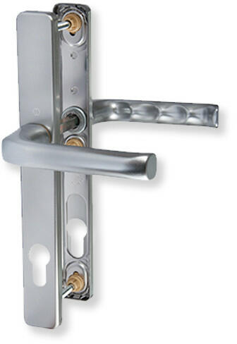 Nagyon eltrejedt furatképpel rendelkező F9 színű kilincs garnitúra. Kialakítása lehetővé teszi a kilincs felfelé történő elmozdulását, azaz felhúzását. 3 db átmenő csavarral rögzíthető a belső oldalról. Nincsen belőle balos és jobbos kivitel. Kiemelt méretként kezelendő a 92 mm, valamint a 3 furat elhelyezkedése. A csomag tartalma: 1 db külső és 1 db belső kilinc