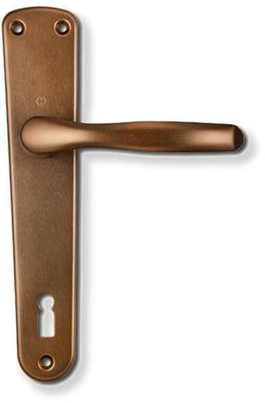 Hoppe Milano kulcsos kilincs garnitúra (F4) bronz színben. Alkalmazható egyaránt balos és jobbos ajtókon is. Kiemelt méretként kezelendő az 55 mm, mely a kilincstengely és a kulcslyuk közötti távolságot jelöli.