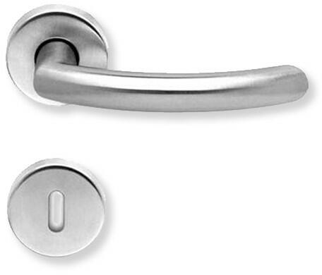 Rozsdamentes szálcsiszolt acél rozettás kilincs garnitúra. A csomag tartalma: belső és külső oldali kilincs rozettával együtt belső és külső oldali cilinderes, kulcsos vagy fordítógombos rozetta fúrási sablon metrikus átmenő csavarok a felszereléshez A rozettás kilincsek elvileg bármilyen méretezésű ajtózárhoz használhatóak, azonban, hogy a kilincs megfelelően legyen