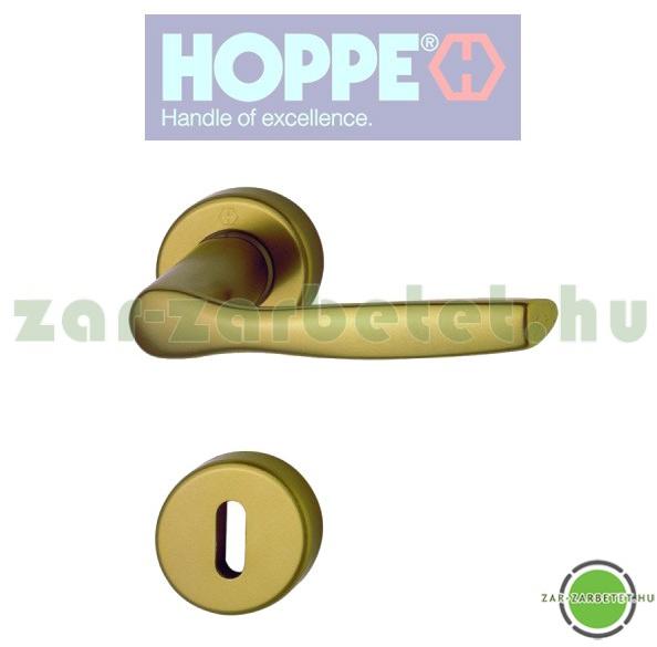 Hoppe Milano rozettás kilincsgarnitúra bronz színben, beltéri ajtókhoz, kulcslyukas verzióban. Jobbos és balos ajtókon egyaránt alkalmazható a kilincs. Pontos méretei: