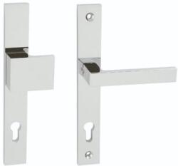Modern stílusú, szögletes fazonú hosszúcímes, keskenycímes biztonsági vasalat, bejárati ajtókhoz. Külső oldalán fix eltolt gomb vagy működő kilincs, belső oldalán kilincs található. A kilincs külső és belső pajzsát az ajtón átmenő erős acélcsavar