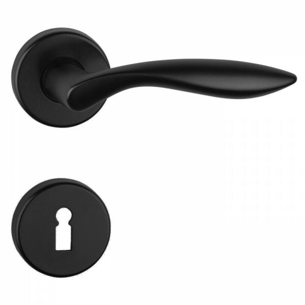 Rozettás rozsdamentes acél kilincs garnitúra. Metrikus menetes, átmenő csavaros (hüvelyes) a rögzítése, mely csavarok a felszerelést követően nem látszanak. A kilincs alaplapja rugót is tartalmaz, így a kilincs visszaemelése nem csak a zár feladata amelynél így hosszabb élettartam várható, valamint komfortosabban hat a működése. 72 vagy 90 mm-es zárral szerelt ajtókhoz j