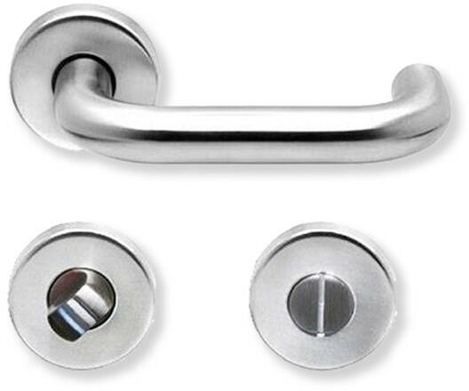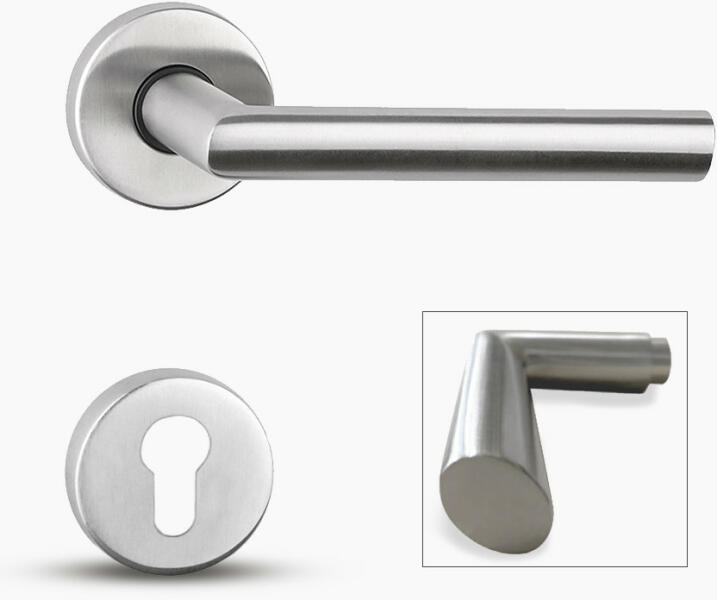 Rozsdamentes szálcsiszolt acél rozettás kilincs garnitúra. A csomag tartalma: belső és külső oldali kilincs rozettával együtt belső és külső oldali cilinderes, kulcsos vagy fordítógombos rozetta fúrási sablon metrikus átmenő csavarok a felszereléshez A rozettás kilincsek elvileg bármilyen méretezésű ajtózárhoz használhatóak, azonban, hogy a kilincs megfelelően legyen