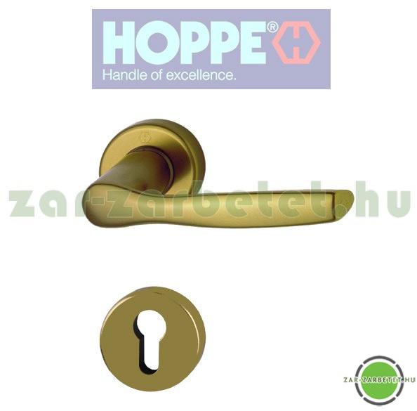 Hoppe Milano rozettás kilincsgarnitúra bronz színben, bejárati ajtókhoz, cilinderlyukas verzióban. Jobbos és balos ajtókon egyaránt alkalmazható a kilincs. Pontos méretei: