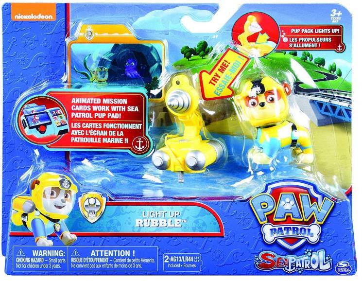 Mancs őrjárat Tengeri őrjárat - Rubble figura világító kiegészítővel A legújabb Mancs őrjárat mesesorozatban a tengermélyét kutatja a hős csapat. Mancs őrjárat Rubble kutyusnak a tengeri kalandokhoz igazodva egy szuper tengeralatti fúrója van, ami világít is. Ezzel könnyedén tud a sötét tengermélyén is segíteni a bajbajutott élőlényeknek. A fúrószerkezet Rubble h