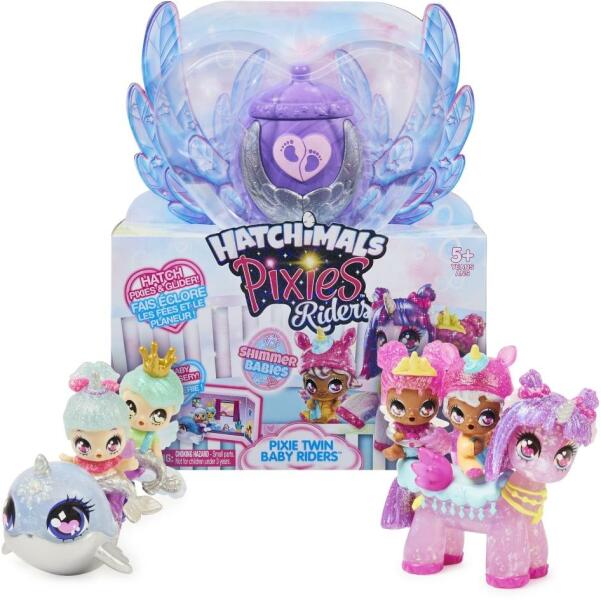 A Hatchimals világba megérkeztek a Pixies lovas babák, akik csillogó külsejükkel biztosan a kedvenceiddé válnak. A szettben van egy kislány és egy kisfiú baba, akiknek csillogó szárnya van és a fejük mozgatható. Hozzá tartozik még egy szép narvál vagy egy csodálatos egyszarvú, mellé 4 darab kiegészítő és egy tojás. A kisállatokra rá tudod ültetni a két babát így j