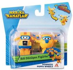 Kedvenc repülős meséd, a Super Wings szárnyalói most beköltözhetnek Hozzád, egyenesen a repteredre! A figurákápár apró mozdulattal átalakíthatók járműből robottá, így akár a szárazföldön akár a levegőbenákalandozhattok velük! A szettbenáDonnie-t és Poppa Wheels-tátalálod. á