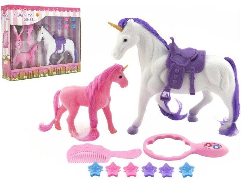 Az egyszarvú egy mitikus állat, amely csodákat tehet. Ezért szükséges az is, hogy jól ápolják és a sörényét mindig gyönyörűen fésülje át. Egyszarvú nyereggel minden csodálónak és lóbarátnak. A ló / egyszarvú 15 cm nagyságú, műanyag, palackos kivitelben. A csomagban egy egyszarvú csikót is talál, palackos kivitelben. A csomag olyan kiegészítőket tartalmaz, mint e