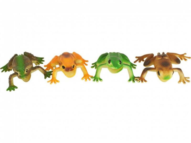 Kisebb békák, vegyes színekben! A Békák 4 darabos készlet puha műanyagból készült színes békákat tartalmaz, barna és zöld színekben. Békák 4 darabos készlet együtt használható más állatos játékokkal. Békák mérete: 9 cm.