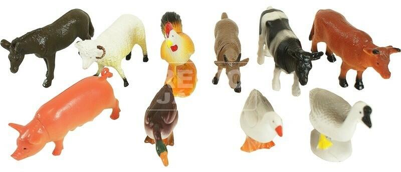 Építsd meg saját tanyádat ezzel az élethű, puhább műanyagból készült háziállatokat tartalmazó készlettel. Megtalálhatód kedvenceidet közöttük, például a bárányt, a tehenet, a kecskét vagy a lovat. A háziállatok műanyagból készültek, szép festésűek. Állatok mérete: kb. 7 cm.