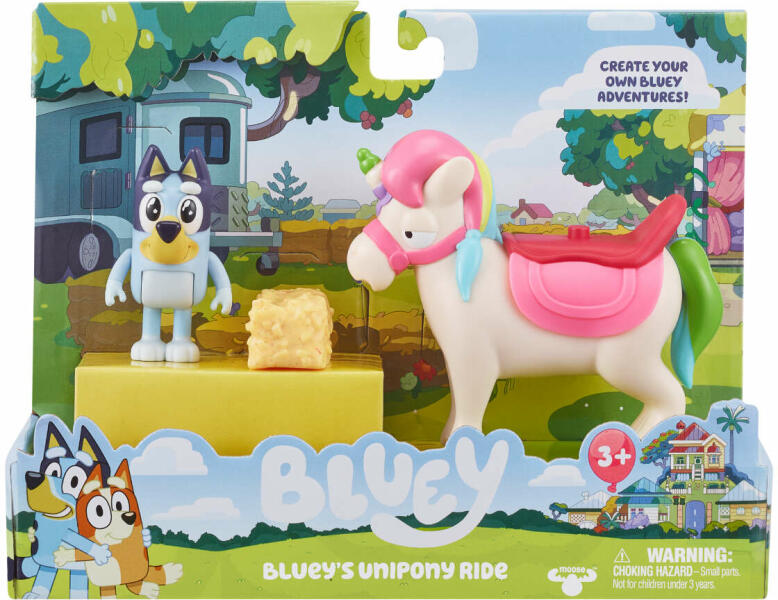 Bluey: Unipóni játékfigura szett unikornissal Hivatalos magyarországi forgalmazótól. Leírás: A Bluey Unipóni játékfigura szett egy varázslatos élményt kínál a kicsiknek. Ebben a mesés szettben található egy részletesen kidolgozott Bluey figura, aki most egy rózsaszín nyergen ülve egy csodás szivárványos sörényű unikornissal indul kalandokra. A két figura együtt alkot