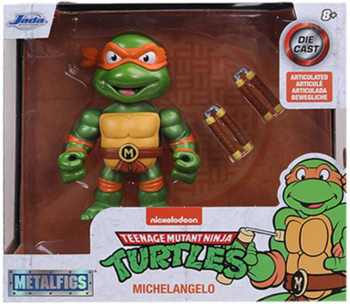 Tini Nindzsa Teknőcök: Metalfigs Michelangelo fém figura 10cm - Simba Toys Hivatalos magyarországi forgalmazótól. Leírás: Michelangelo egyértelműen a Teknőcök csapat felelőtlen és kalandvágyó mókamestere, aki az egész napot legszívesebben szórakozással töltené. Fegyver egy pár nuncsaku, amivel mindig rendet vág az ellenfél sorai között. A Metalfigs figurák rendkívül