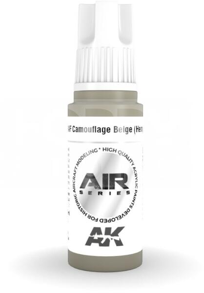 AK-Interactive Acrylics 3rd generation RAF Camouflage Beige (Hemp) BS381C/389 AIR SERIES akrilfesték AK11856 Új formulával készült kiváló minőségű akrilfesték modellezéshez-makettezéshez. Új összetevőinek köszönhetően a festék szerkezete nem esik szét, ezzel elkerülhetjük a termék állása utáni hosszadalmas felrázási folyamatot. Kiválóan alkalmas ecsettel és airbrush