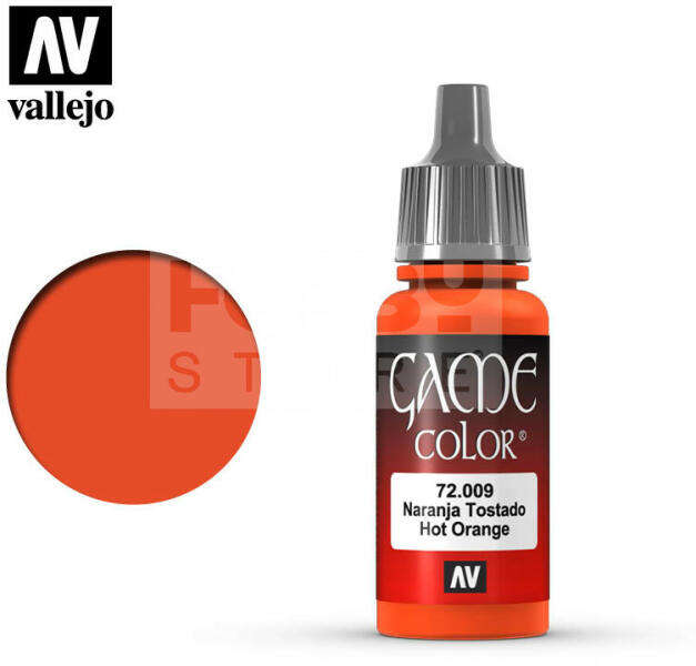 Vallejo Game Color Hot Orange akrilfesték 72009 Magas pigmenttartalmú vízbázisú akrilfesték ecsettel történő használatra. A Vallejo Game Color festékek mindegyikét fantáziafigurákra és dioráma készítésre szakosodott modellfestőkkel fejlesztették ki. A Game Color festékek fejleszésénél figyelembe vették, hogy jórészt asztali wargame társasjátékok használói fogják a