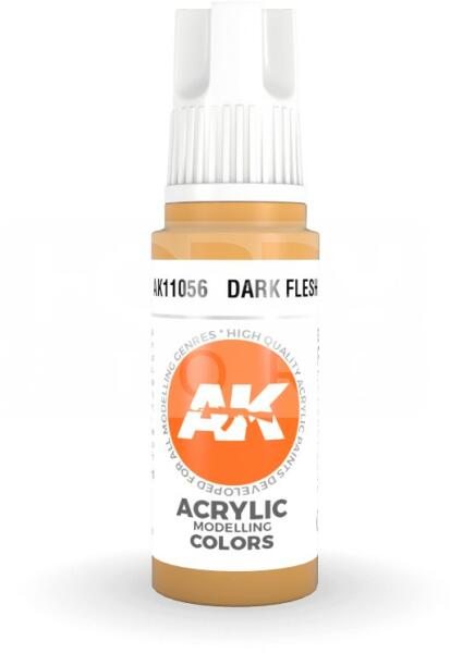 AK-Interactive - Acrylics 3rd generation Dark Flesh 17ml - akrilfesték AK11056 Új formulával készült kiváló minőségű akrilfesték modellezéshez-makettezéshez. Új összetevőinek köszönhetően a festék szerkezete nem esik szét, ezzel elkerülhetjük a termék állása utáni hosszadalmas felrázási folyamatot. Kiválóan alkalmas ecsettel és airbrush-al történő alkalmazásra i