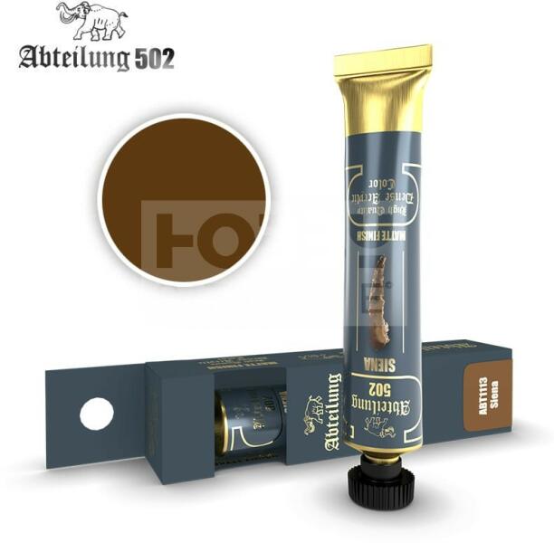 Abteilung 502 - Dense Paint - SIENA - sűrű akrilfesték ABT1113 Az Abteilung 502 Artis (Dense Paint) tubusos sűrű akrilfestékek olyan formulával rendelkeznek, hogy maximális fedést és takarást biztosítsanak, kombinálva a szín élénkségével és intenzitásával. Teljesen mattra száradnak. Kifejezetten figurafestők számára készült. Az Abteilung 502 sűrű akrilfestékek rendkí