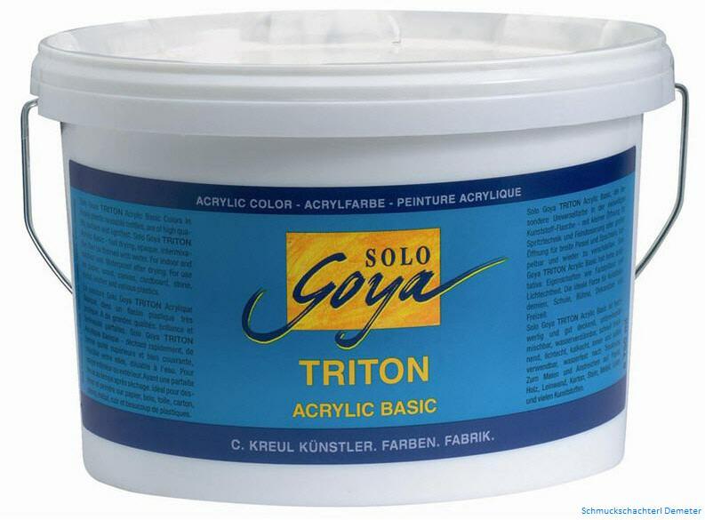 Akrilfesték Solo Goya TRITON 2500 ml | különböző színek Solo Goya TRITON 2500 ml magas minőségű, univerzáis akrilfestékekvízbázisú, jól fednem fakulgyorsan szárad és jól keverhetőbeltéri és kültéri használatra is alkalmasszáradás után vízállófesthetünk velük papírra, fára, vászonra, kőre, fémre és műanyagra, kartonra2500 ml-es műanyag vödörbe csomagolva