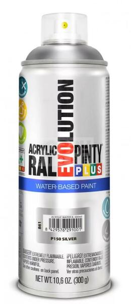 PINTYPLUS EVOLUTION VIZES BÁZISÚ METÁL AKRIL SPRAY - EZÜST - (SILVER) 400ML - PP861 A PintyPlus Evolution Water-based, vizes bázisú akril festék spray egy speciális festék azok számára, akinek fontos a környezet védelme. A vizes bázisú EVO spray termékcsalád univerzálisan használható, RAL színekben érhető el. Vizes bázisú spray , ezért bármilyen célra, bármilyen felül