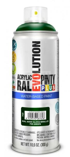 PINTYPLUS EVOLUTION VIZES BÁZISÚ AKRIL SPRAY- FENYŐZÖLD- RAL6009 (FIR GREEN) 400ML - PP769 A PintyPlus Evolution Water-based, vizes bázisú akril festék spray egy speciális festék azok számára, akinek fontos a környezet védelme. A vizes bázisú EVO spray termékcsalád univerzálisan használható, RAL színekben érhető el. Vizes bázisú spray , ezért bármilyen célra, bármilyen