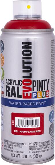 A PintyPlus Evolution Water-based, vizes bázisú akril festék spray egy speciális festék azok számára, akinek fontos a környezet védelme. Használata könnyű és egyszerű, mert szinte teljesen szagtalan, így használat közben nincs kellemetlen oldószer szag. Oldószer mentes , egységes, sima felülüetet képez, amely rendkívül tartós és időjárásálló száradás után. Ez az