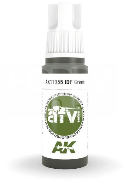 AK-Interactive - Acrylics 3rd generation IDF Green - akrilfesték AK11355 Új formulával készült kiváló minőségű akrilfesték modellezéshez-makettezéshez. Új összetevőinek köszönhetően a festék szerkezete nem esik szét, ezzel elkerülhetjük a termék állása utáni hosszadalmas felrázási folyamatot. Kiválóan alkalmas ecsettel és airbrush-al történő alkalmazásra is, ut