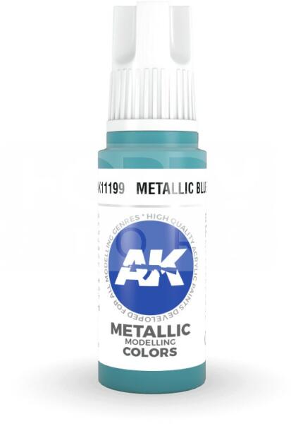 AK-Interactive - Acrylics 3rd generation Metallic Blue 17ml - akrilfesték AK11199 Új formulával készült kiváló minőségű akrilfesték modellezéshez-makettezéshez. Új összetevőinek köszönhetően a festék szerkezete nem esik szét, ezzel elkerülhetjük a termék állása utáni hosszadalmas felrázási folyamatot. Kiválóan alkalmas ecsettel és airbrush-al történő alkalmazásr