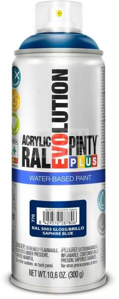 PINTYPLUS EVOLUTION VIZES BÁZISÚ AKRIL SPRAY- ZAFÍRKÉK- RAL5003 (SAPHIRE BLUE) 400ML - PP770 A PintyPlus Evolution Water-based, vizes bázisú akril festék spray egy speciális festék azok számára, akinek fontos a környezet védelme. A vizes bázisú EVO spray termékcsalád univerzálisan használható, RAL színekben érhető el. Vizes bázisú spray , ezért bármilyen célra, bármily