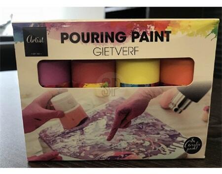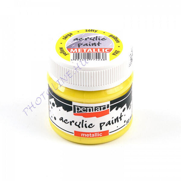 Vízbázisú, vízzel hígítható metál akrilfesték, különféle színekben: sárga, világoskék, világoszöld, világoslila, rózsaszín, narancs, türkiz.