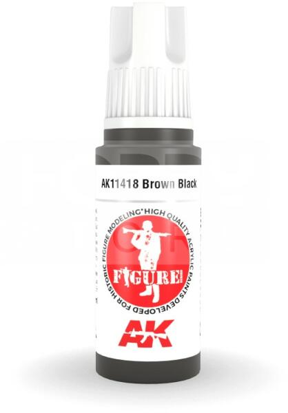 AK-Interactive - Acrylics 3rd generation Brown Black - akrilfesték AK11418 Új formulával készült kiváló minőségű akrilfesték modellezéshez-makettezéshez. Új összetevőinek köszönhetően a festék szerkezete nem esik szét, ezzel elkerülhetjük a termék állása utáni hosszadalmas felrázási folyamatot. Kiválóan alkalmas ecsettel és airbrush-al történő alkalmazásra is, u