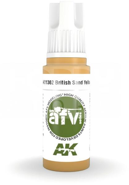 AK-Interactive - Acrylics 3rd generation British Sand Yellow - akrilfesték AK11362 Új formulával készült kiváló minőségű akrilfesték modellezéshez-makettezéshez. Új összetevőinek köszönhetően a festék szerkezete nem esik szét, ezzel elkerülhetjük a termék állása utáni hosszadalmas felrázási folyamatot. Kiválóan alkalmas ecsettel és airbrush-al történő alkalmazás