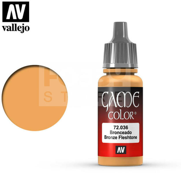 Vallejo Game Color Bronze Fleshtone akrilfesték 72036 Magas pigmenttartalmú vízbázisú akrilfesték ecsettel történő használatra. A Vallejo Game Color festékek mindegyikét fantáziafigurákra és dioráma készítésre szakosodott modellfestőkkel fejlesztették ki. A Game Color festékek fejleszésénél figyelembe vették, hogy jórészt asztali wargame társasjátékok használói fog