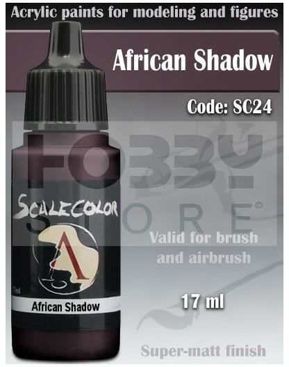 Scale75 - SCALECOLOR Range - AFRICAN SHADOW akrilfesték 17ml SC-24 Akrilfesték modellezőknek és wargamesek számára. Magas pigment tartalmú rendkívül jól fedő és használahtó ultra mattra száradó festék. A Scale75 Scalecolor széria elsősorban figura festők és társasjáték figura festők számára készült. A 63 színből álló paletta rendkívül élénk színeivel nagyszer