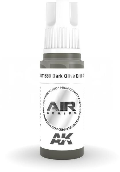 AK-Interactive Acrylics 3rd generation Dark Olive Drab 41 AIR SERIES akrilfesték AK11860 Új formulával készült kiváló minőségű akrilfesték modellezéshez-makettezéshez. Új összetevőinek köszönhetően a festék szerkezete nem esik szét, ezzel elkerülhetjük a termék állása utáni hosszadalmas felrázási folyamatot. Kiválóan alkalmas ecsettel és airbrush-al történő alkal