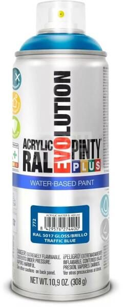 PINTYPLUS EVOLUTION VIZES BÁZISÚ AKRIL SPRAY- KÉK- RAL5017 (TRAFFIC BLUE) 400ML - PP772 A PintyPlus Evolution Water-based, vizes bázisú akril festék spray egy speciális festék azok számára, akinek fontos a környezet védelme. A vizes bázisú EVO spray termékcsalád univerzálisan használható, RAL színekben érhető el. Vizes bázisú spray , ezért bármilyen célra, bármilyen fel