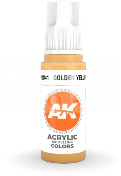 AK-Interactive - Acrylics 3rd generation Golden Yellow 17ml - akrilfesték AK11041 Új formulával készült kiváló minőségű akrilfesték modellezéshez-makettezéshez. Új összetevőinek köszönhetően a festék szerkezete nem esik szét, ezzel elkerülhetjük a termék állása utáni hosszadalmas felrázási folyamatot. Kiválóan alkalmas ecsettel és airbrush-al történő alkalmazásr