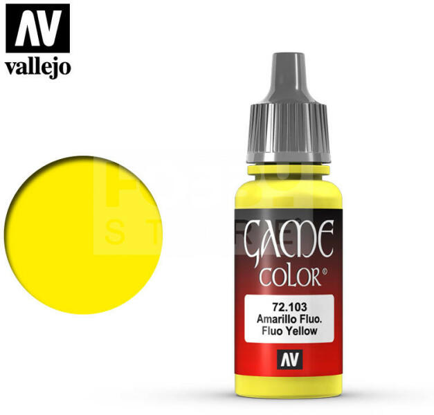 Vallejo Game Color Fluo Yellow akrilfesték 72103 Magas pigmenttartalmú vízbázisú akrilfesték ecsettel történő használatra. A Vallejo Game Color festékek mindegyikét fantáziafigurákra és dioráma készítésre szakosodott modellfestőkkel fejlesztették ki. A Game Color festékek fejleszésénél figyelembe vették, hogy jórészt asztali wargame társasjátékok használói fogják