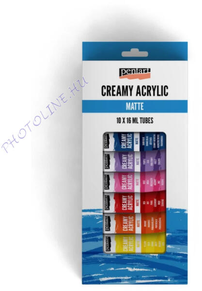 Népszerű krémes akrilfestékeink már 6 x 16 ml-es és 10 x 16 ml-es szettekben is kaphatóak. Magas pigment tartalmú, vízbázisú, krémes állagú, jól fedő akrilfesték matt, selyemfényű vagy metál hatással. A festék megtartja az alakját, így kiválóan használható stencilezéshez vagy festőkéses technikákhoz. Gyorsan szárad.
