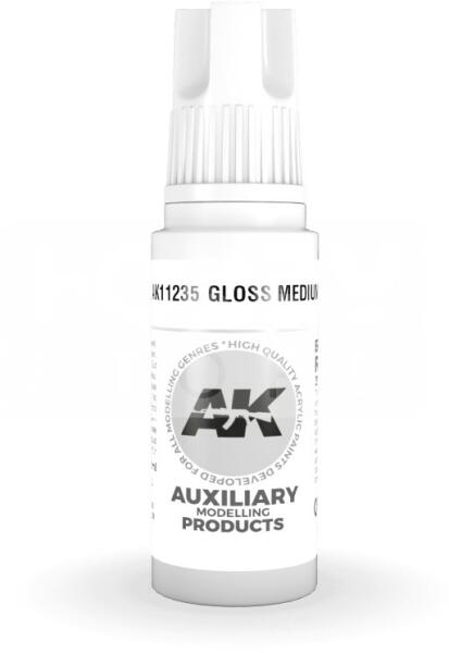AK-Interactive - Acrylics 3rd generation Gloss Medium 17ml - AK11235 3. generációs festékhez keverve fényes hatást érhetünk el. Új formulával készült kiváló minőségű akrilfesték modellezéshez-makettezéshez. Új összetevőinek köszönhetően a festék szerkezete nem esik szét, ezzel elkerülhetjük a termék állása utáni hosszadalmas felrázási folyamatot. Kiválóan alkal