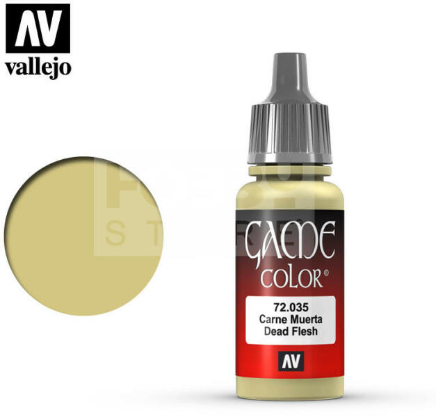 Vallejo Game Color Dead Flesh akrilfesték 72035 Magas pigmenttartalmú vízbázisú akrilfesték ecsettel történő használatra. A Vallejo Game Color festékek mindegyikét fantáziafigurákra és dioráma készítésre szakosodott modellfestőkkel fejlesztették ki. A Game Color festékek fejleszésénél figyelembe vették, hogy jórészt asztali wargame társasjátékok használói fogják a