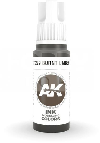 AK-Interactive - Acrylics 3rd generation Burnt Umber INK - akrilfesték AK11229 Új formulával készült kiváló minőségű akrilfesték modellezéshez-makettezéshez. Új összetevőinek köszönhetően a festék szerkezete nem esik szét, ezzel elkerülhetjük a termék állása utáni hosszadalmas felrázási folyamatot. Kiválóan alkalmas ecsettel és airbrush-al történő alkalmazásra i