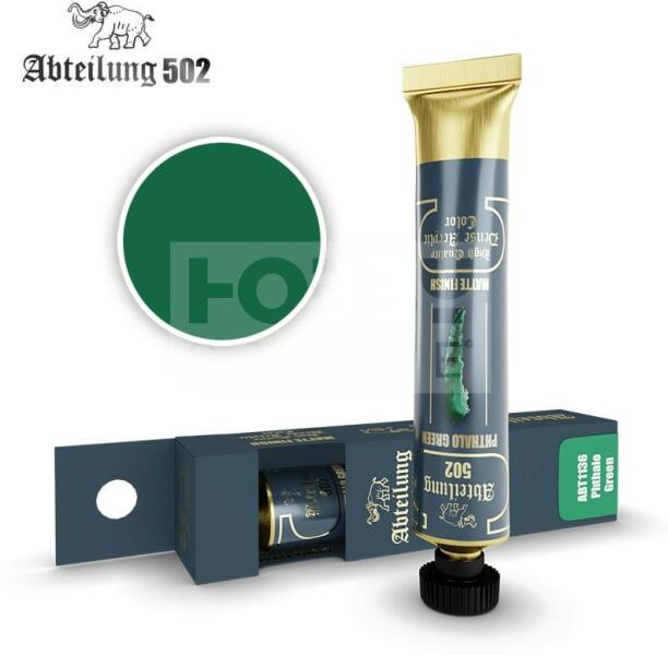 Abteilung 502 - Dense Paint - PHTHALO GREEN - sűrű akrilfesték ABT1136 Az Abteilung 502 Artis (Dense Paint) tubusos sűrű akrilfestékek olyan formulával rendelkeznek, hogy maximális fedést és takarást biztosítsanak, kombinálva a szín élénkségével és intenzitásával. Teljesen mattra száradnak. Kifejezetten figurafestők számára készült. Az Abteilung 502 sűrű akrilfestékek