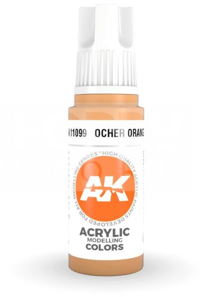 AK-Interactive - Acrylics 3rd generation Ocher Orange 17ml - akrilfesték AK11099 Új formulával készült kiváló minőségű akrilfesték modellezéshez-makettezéshez. Új összetevőinek köszönhetően a festék szerkezete nem esik szét, ezzel elkerülhetjük a termék állása utáni hosszadalmas felrázási folyamatot. Kiválóan alkalmas ecsettel és airbrush-al történő alkalmazásra