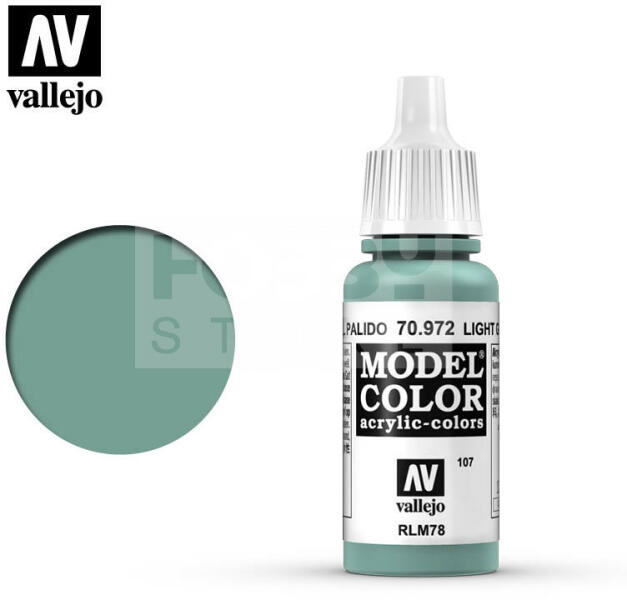 Vallejo Model Color Light Green Blue akrilfesték 70972 Magas pigmenttartalmú vízbázisú akrilfesték ecsettel történő használatra. A Vallejo Model Color széria nagyon kiterjedt magába foglalva az alapvető árnyalatokat, valamint számos történelmi színt illetve jármű és repülőgépek modellekhez használt katonai színek. Speciális effektek eléréséhez megtalálható a palett