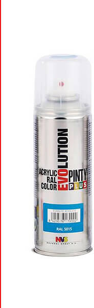 A Pinty Plus Evolution akrilfesték spray extra gyorsan száradó (kb. 15 perc) akril festék, standard RAL színekben. Beltérre és kültérre egyaránt alkalmazható. Egységes, sima magas fényű réteget képez. Szinte bármilyen felületen alkalmazható: fa, fém, kő, papír, karton és számos műanyag. Alkalmazása: A festendő felület legyen száraz, tiszta, por- és zsírmentes. Rázzu