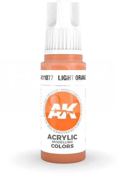 AK-Interactive - Acrylics 3rd generation Light Orange 17ml - akrilfesték AK11077 Új formulával készült kiváló minőségű akrilfesték modellezéshez-makettezéshez. Új összetevőinek köszönhetően a festék szerkezete nem esik szét, ezzel elkerülhetjük a termék állása utáni hosszadalmas felrázási folyamatot. Kiválóan alkalmas ecsettel és airbrush-al történő alkalmazásra
