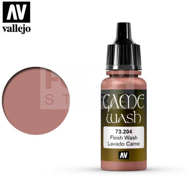 Vallejo Game Color Flesh wash (bemosó folyadék) 73204 Magas pigmenttartalmú vízbázisú akrilfesték ecsettel történő használatra. A Vallejo Game Color festékek mindegyikét fantáziafigurákra és dioráma készítésre szakosodott modellfestőkkel fejlesztették ki. A Game Color festékek fejleszésénél figyelembe vették, hogy jórészt asztali wargame társasjátékok használói fo