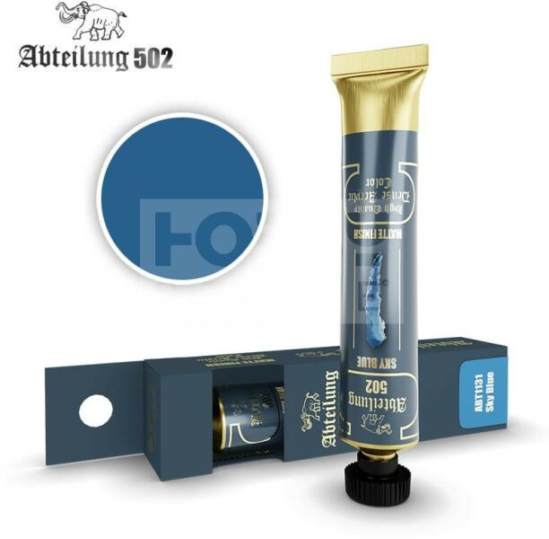 Abteilung 502 - Dense Paint - SKY BLUE - sűrű akrilfesték ABT1131 Az Abteilung 502 Artis (Dense Paint) tubusos sűrű akrilfestékek olyan formulával rendelkeznek, hogy maximális fedést és takarást biztosítsanak, kombinálva a szín élénkségével és intenzitásával. Teljesen mattra száradnak. Kifejezetten figurafestők számára készült. Az Abteilung 502 sűrű akrilfestékek rend
