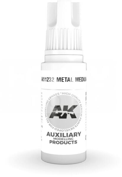 AK-Interactive - Acrylics 3rd generation Metal Medium 17ml AK11232 3. generációs akrilfestékkel keverve metál hatást érhetünk el. Új formulával készült kiváló minőségű akrilfesték modellezéshez-makettezéshez. Új összetevőinek köszönhetően a festék szerkezete nem esik szét, ezzel elkerülhetjük a termék állása utáni hosszadalmas felrázási folyamatot. Kiválóan alk